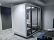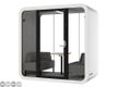 Used Framery Q Maggie acoustic pod with automated light and airflow. Exterior with white laminate front with plywood edge and white, powder-coated metal sides.