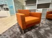 Used Hitch Mylius armchairs upholstered in orange fabric.