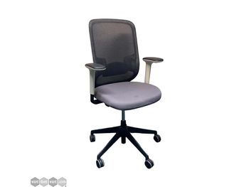 Used Vitra ID Trim draughtsman chair in light grey with lumbar support on a 5-starred base with wheels