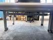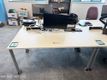 Used white single desks on castors including cable trays