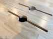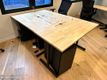 Used desk with timber MFC top with cable cut-out and black T-leg frames