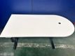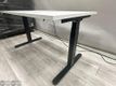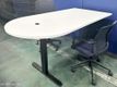Used Vehyl Workmeet sit stand desk with white scoop top and black frame