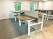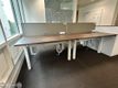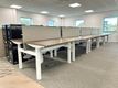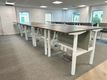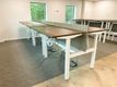 Used 'Task' electric Sit/Stand back-to-back workstations with walnut MFC tops and white metal frame.