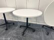 Used round flip top table with white top and black frame